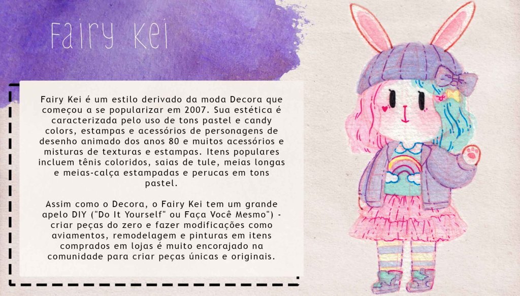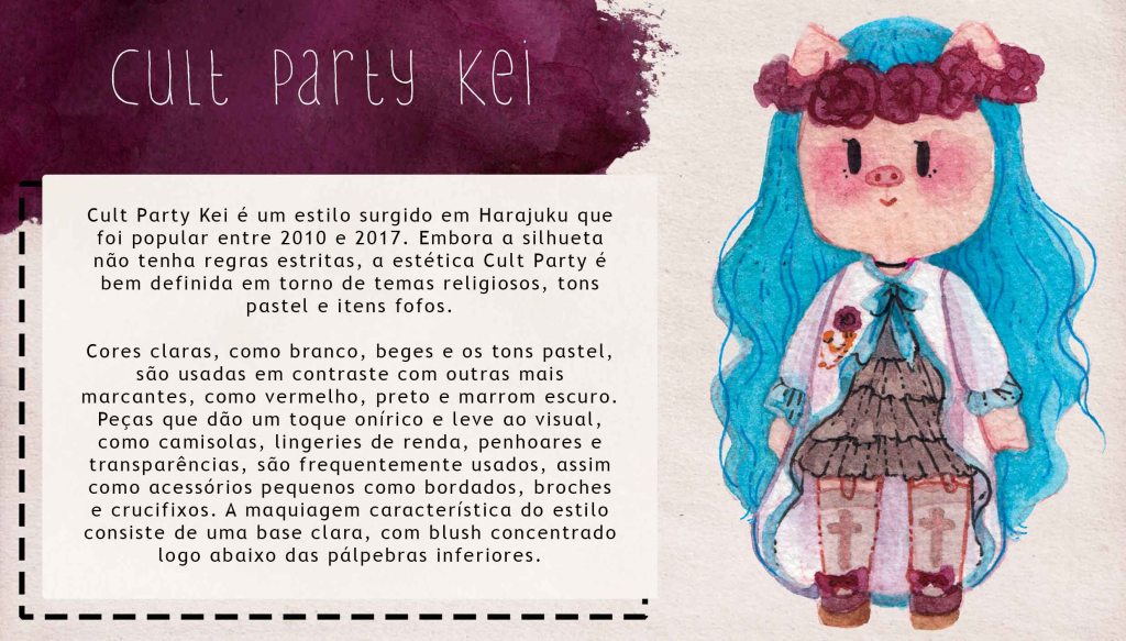 Harajuku é uma pequena série sobre estilos de moda de rua japonesa das últimas décadas. Cada texto resume um pouco sobre um estilo famoso e vem acompanhado de uma ilustração em aquarela que representa visualmente suas características mais marcantes. Projeto criado para blog de moda.